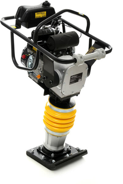 Vibrációs döngölőbéka 82 kg Vibrációs döngölőbéka 82 kg-os súllyal és 6,5 HP teljesítménnyel, Talaj, homok, kavics tömörítésére használják, de olyan helyeken is használható, ahol szükséges az anyag erős tömörítése, pl. csatornaépítésnél, ásatások utántöltésénél, kábelelosztó rendszerek építésénél stb. Kiváló ügyességének köszönhetően zárt terekben, például keskeny ásatásoknál is alkalmas. Szállítókerekekkel kapható. Technikai paraméterek:Motor: LONCIN 165FTeljesítmény: 6,5 HPTömtörítőerő: 14 kNRezgés: 40 – 65 mmMélység: 450 mmSebesség: 9 – 12 m/minAlapzat méretetei: 330 x 290 mmOlajmárka: SAE 15W-40Olajtartály térfogata: 2,2 lSúly: 82 kg